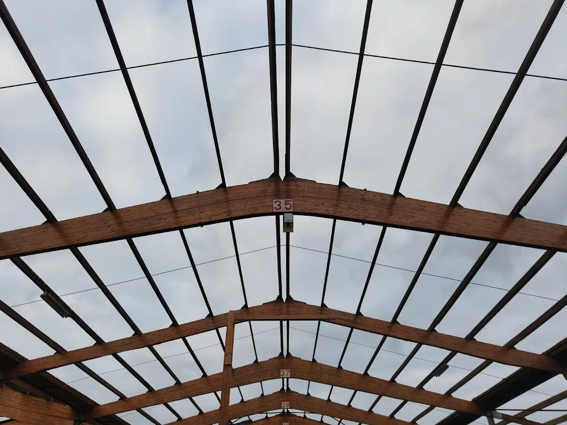 De balken zijn droog opgeslagen en verkeren in zeer goede staat. Ze werden gerecupereerd uit de dakstructuur van een hangaar in samenwerking met de aannemer. Ze zijn geschikt voor zowel constructieve als zichtbare toepassingen.