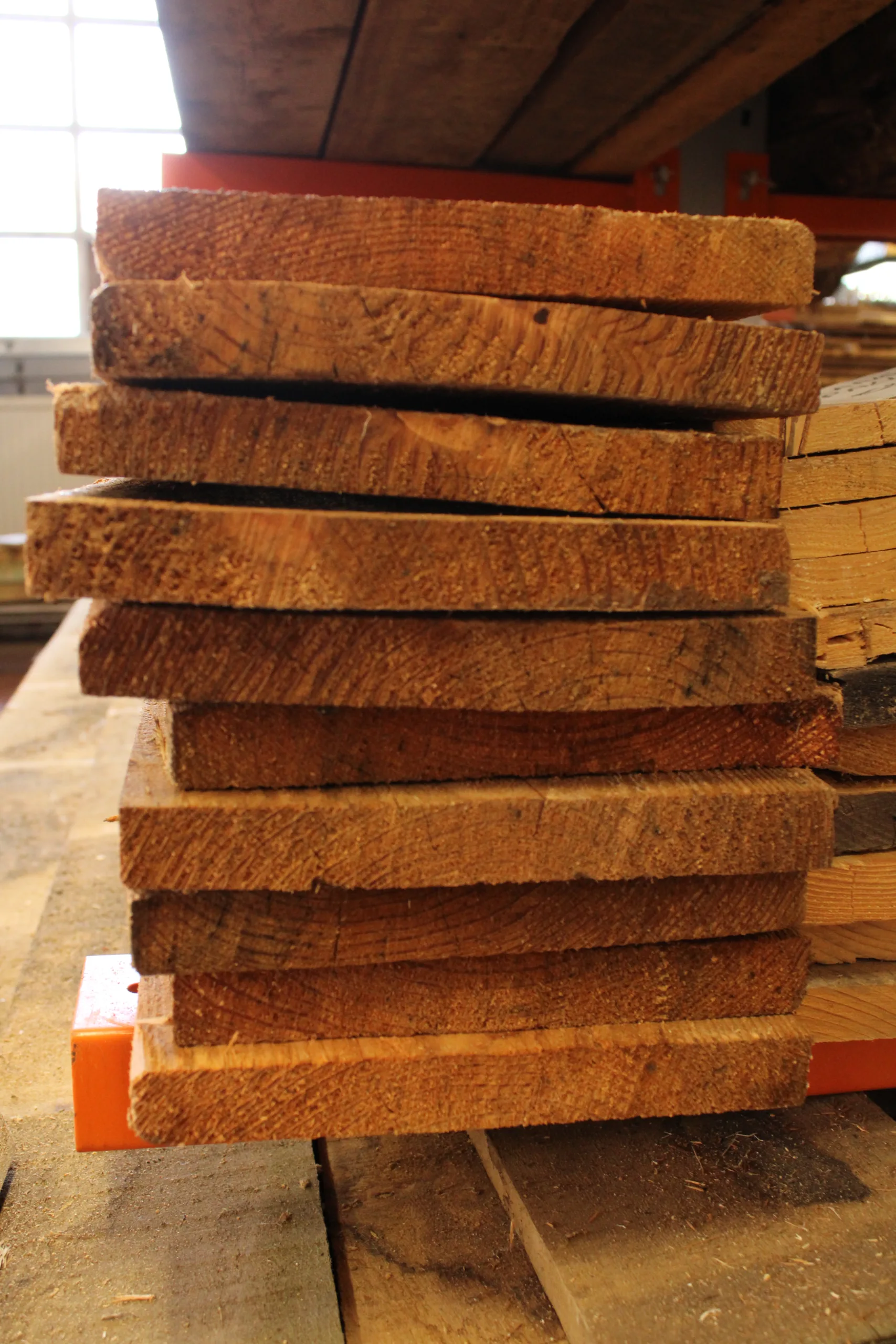 Afkomstig van lokaal gezaagde bomen (Brabantse Wouden).