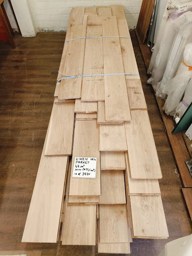 Massieve, gerecupereerde parket afkomstig uit de ontmanteling van een woning.