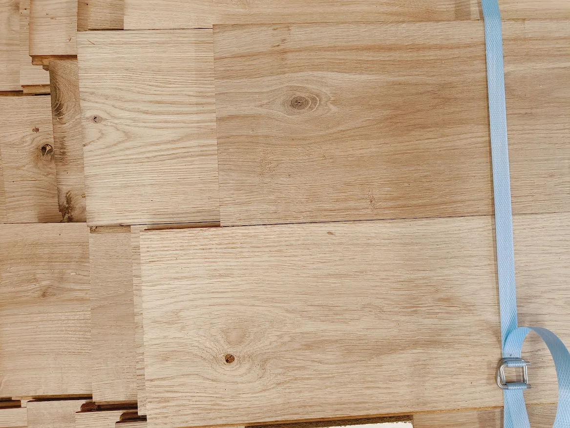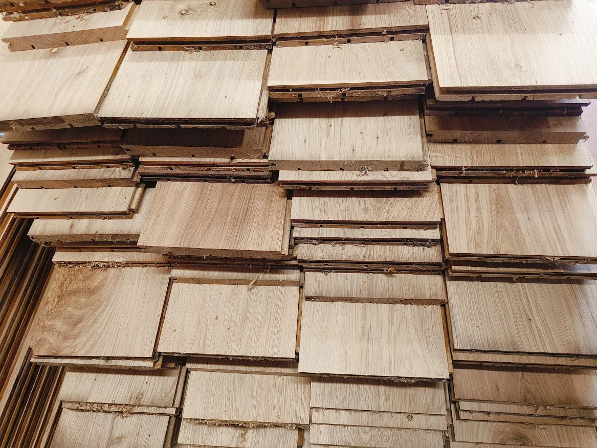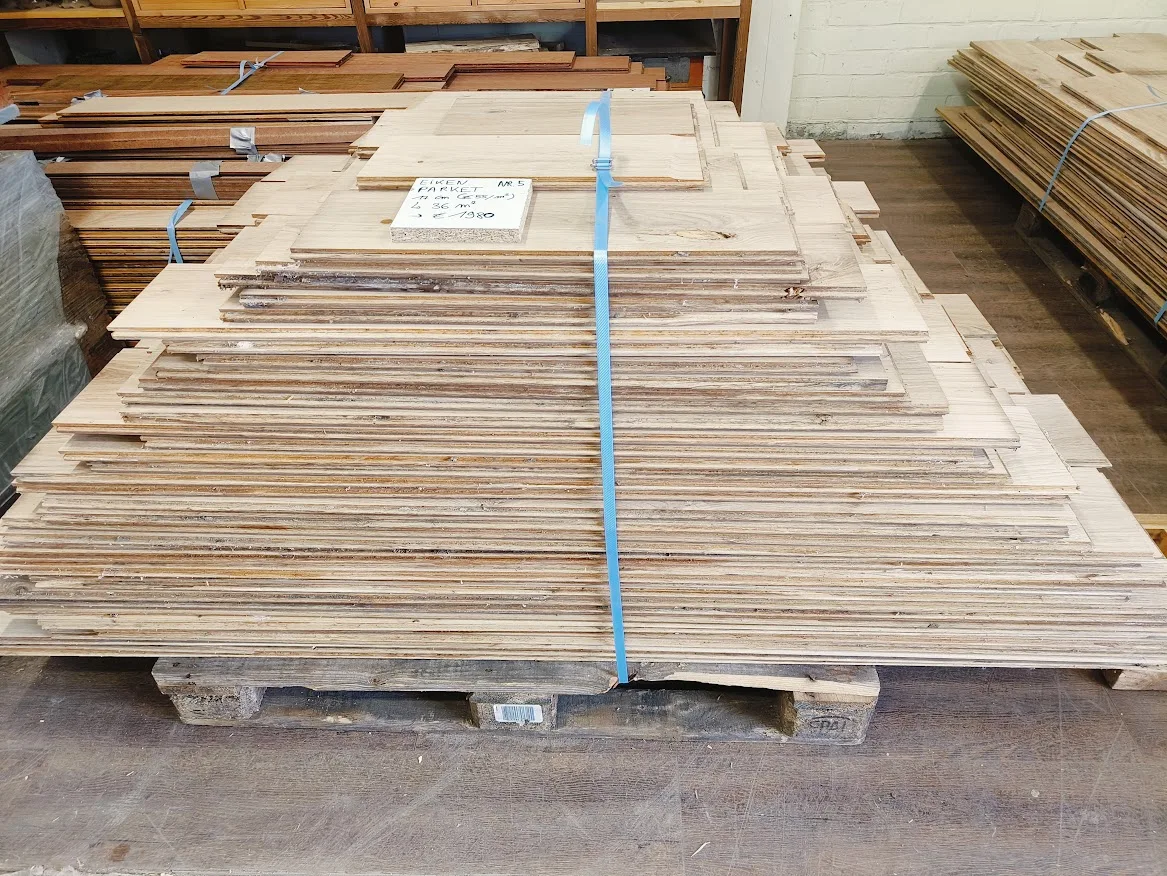 Massieve, gerecupereerde parket afkomstig uit de ontmanteling van een woning.