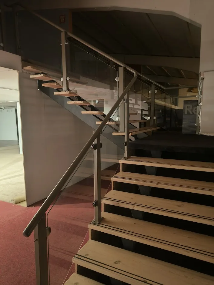 Daarnaast zijn er ook twee stalen hoektrappen beschikbaar die aansluiten op de structuur van de tussenverdieping.