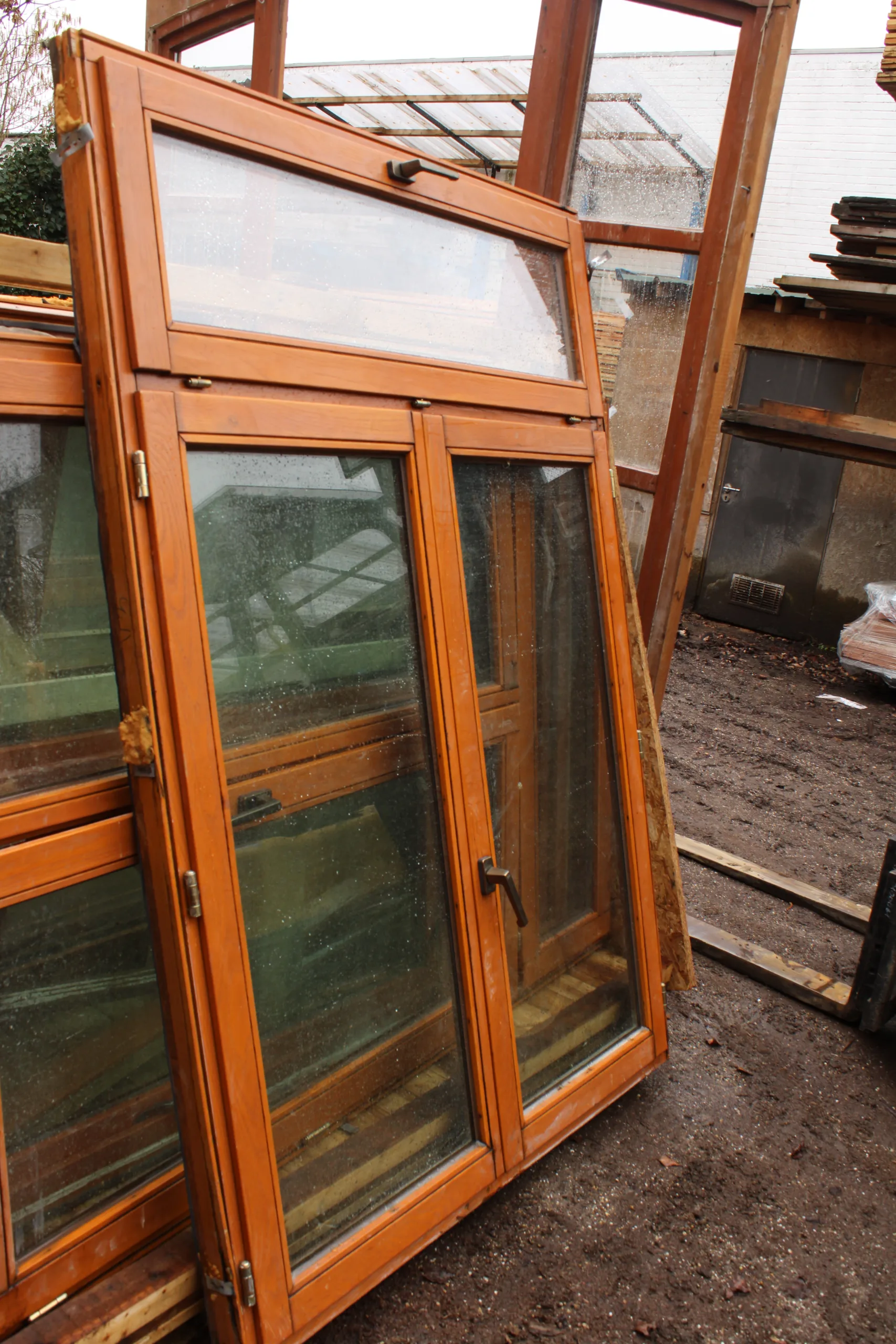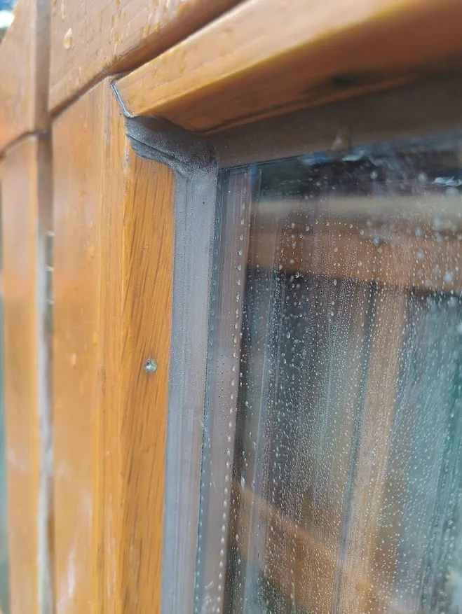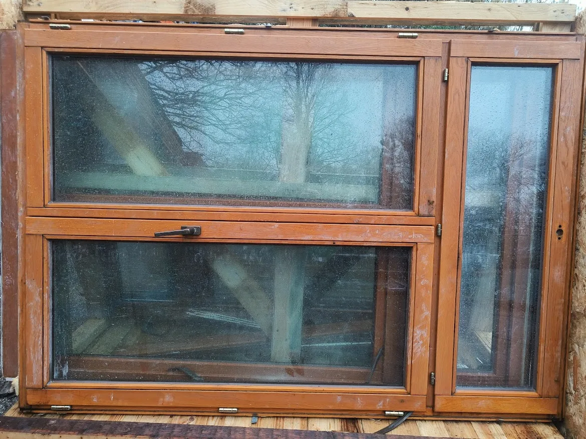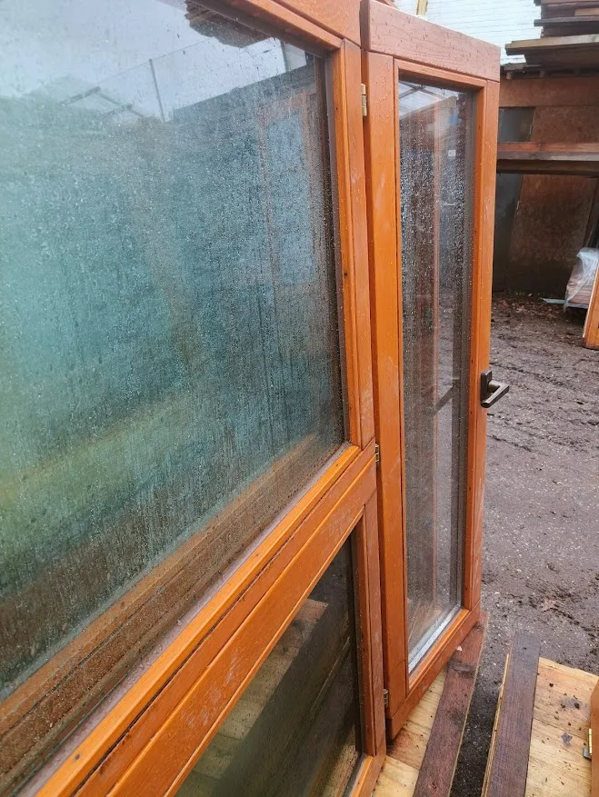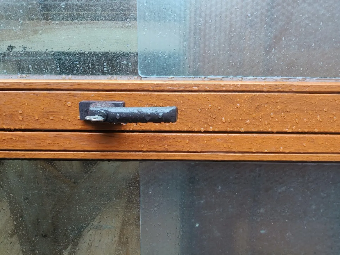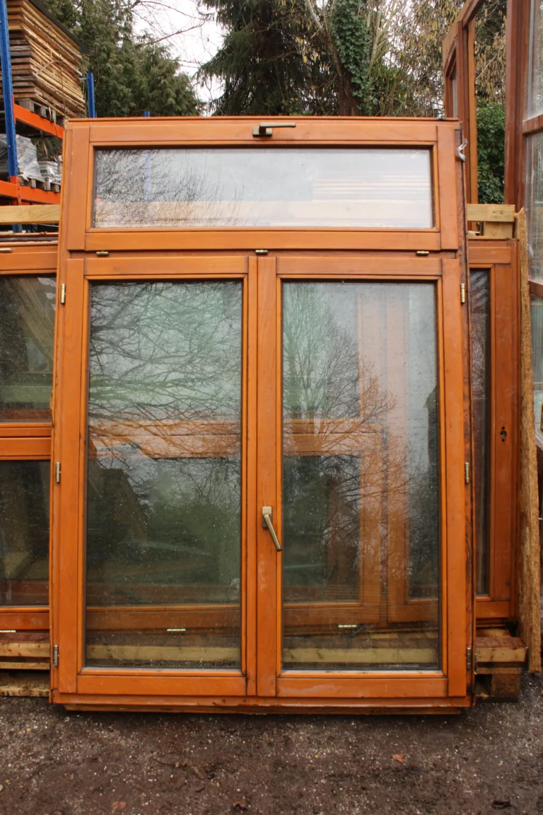 Het grote raam bevat oud dubbel glas.