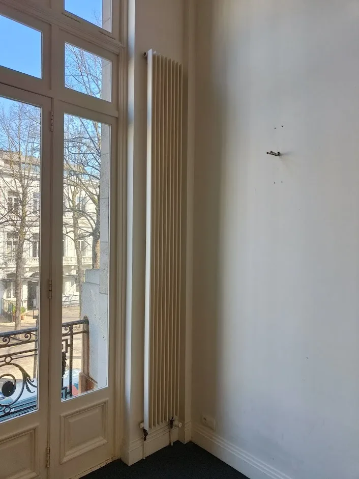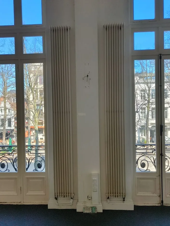 De radiatoren zijn afkomstig uit de ontmanteling van een gebouw op de Graanmarkt in Antwerpen. De recuperatie gebeurde in samenwerking met aannemer Beneens, waarbij de radiatoren zorgvuldig werden gedemonteerd om hergebruik mogelijk te maken.