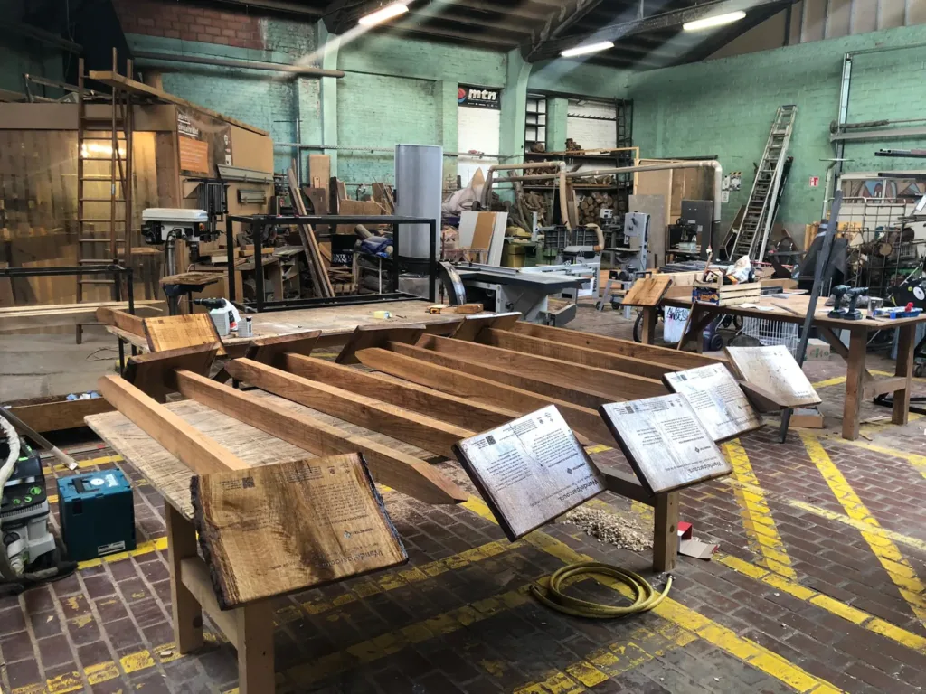 Wat een dankbaar en mooi project! In het kader van de poëtische wandeling “10 perspectieven” en op vraag van Abdij van Park maakten we 17 vlaggenmasten en infobordjes. Deze wandeling was te bewandelen van september tot december 2022. De vlaggenmasten bestaan uit twee delen: de sokkels en de masten zelf. Al het gebruikte merantihout voor de sokkels […]
