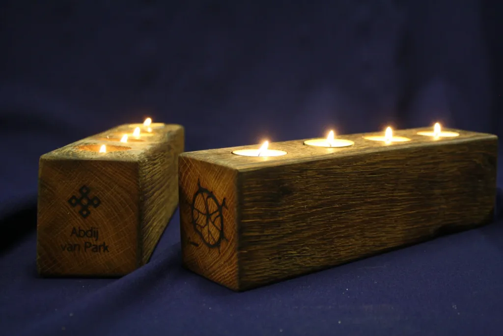 Theelichthouders gemaakt uit 17e-eeuwse eiken balken