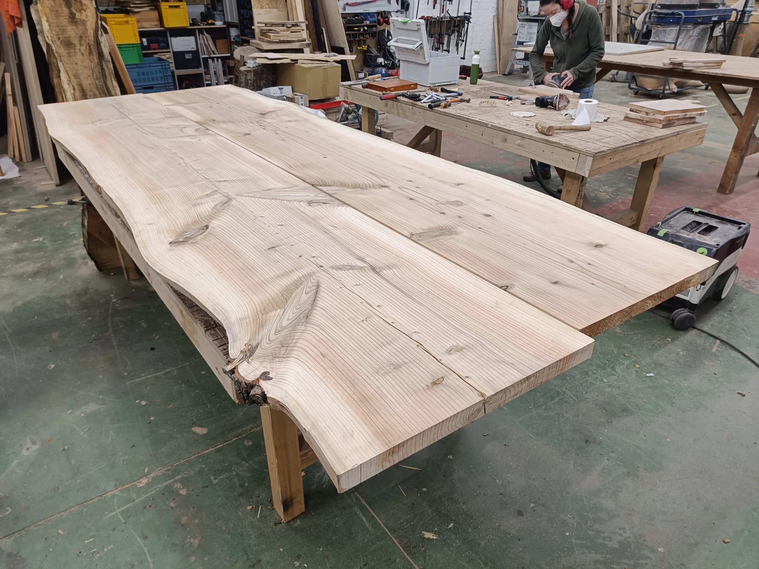 Begin vorig jaar kregen we van Felix en Sofie een bijzondere vraag: hun cederboom in de tuin moest wijken, maar ze wilden het hout graag een nieuwe bestemming geven. Geen afvoer of versnippering, maar een tastbare herinnering in de vorm van maatwerkmeubels.
