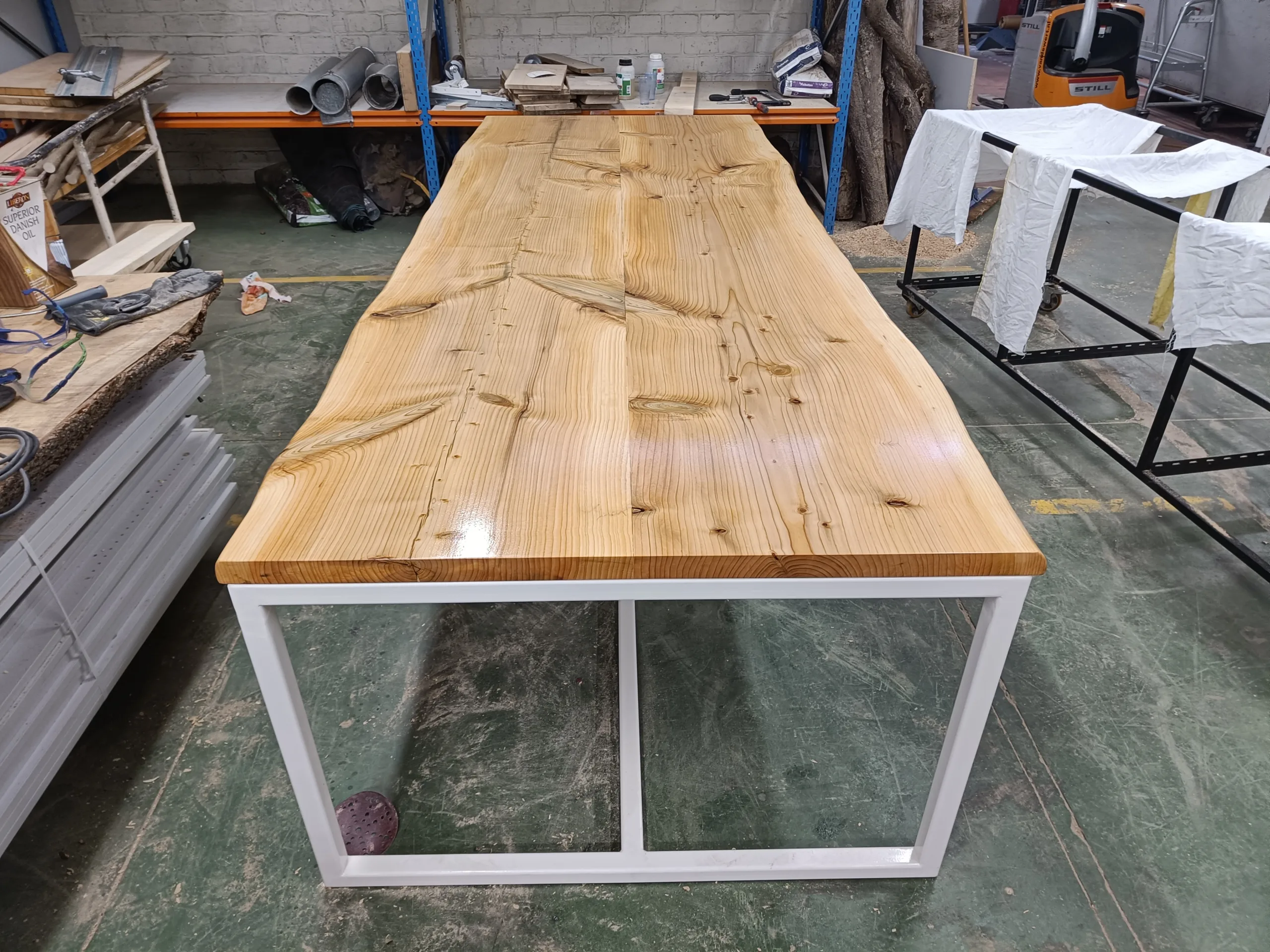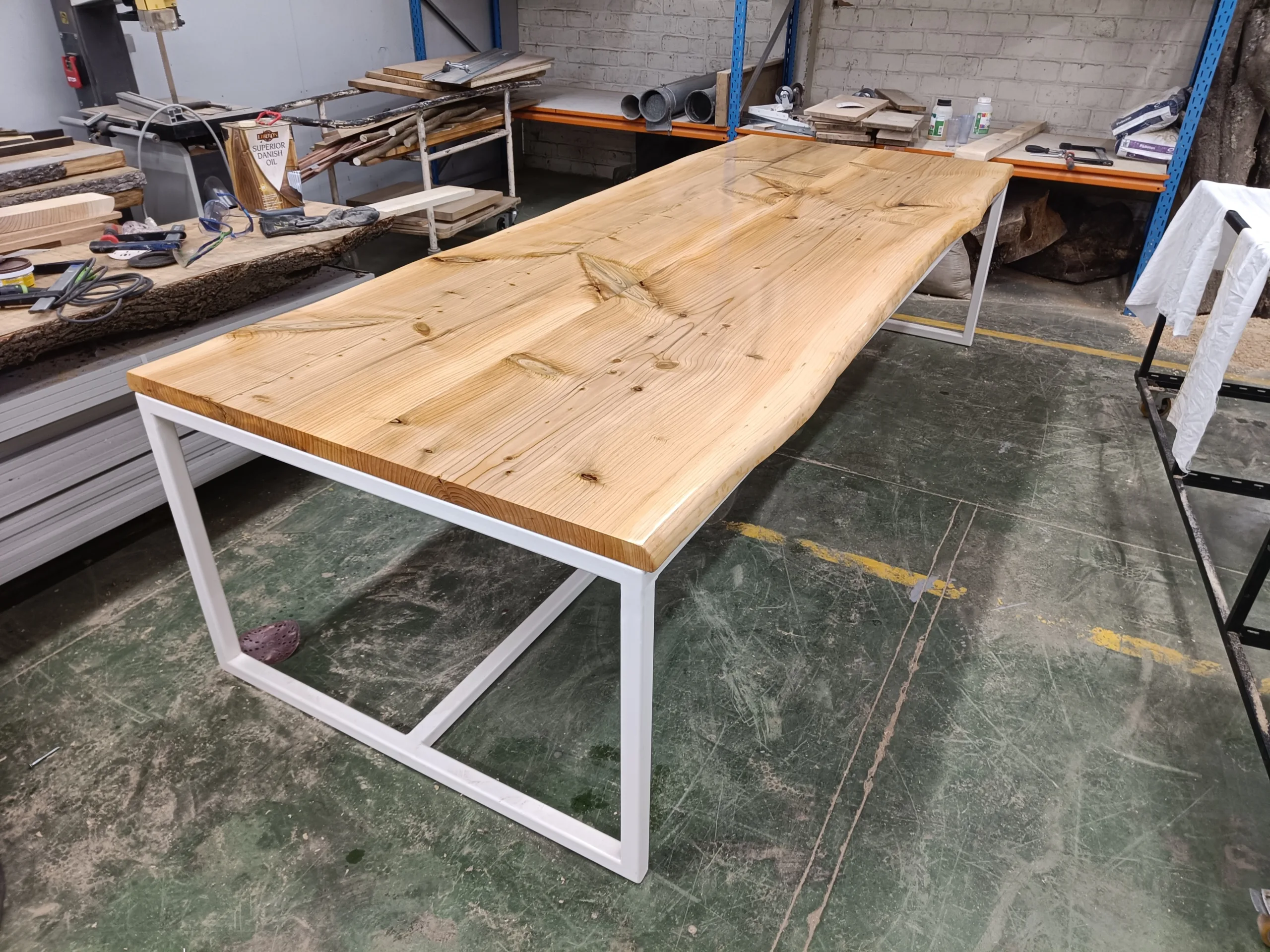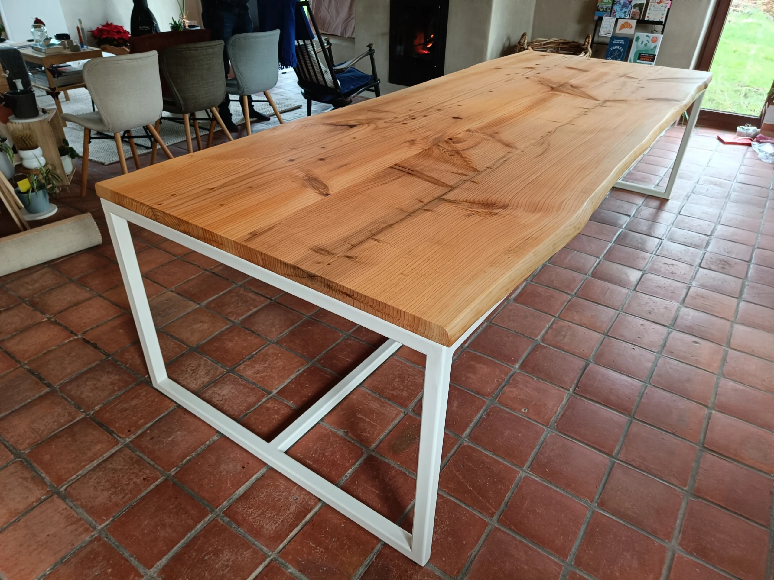 Het eerste resultaat van dit traject is een grote tafel met metalen onderstel.