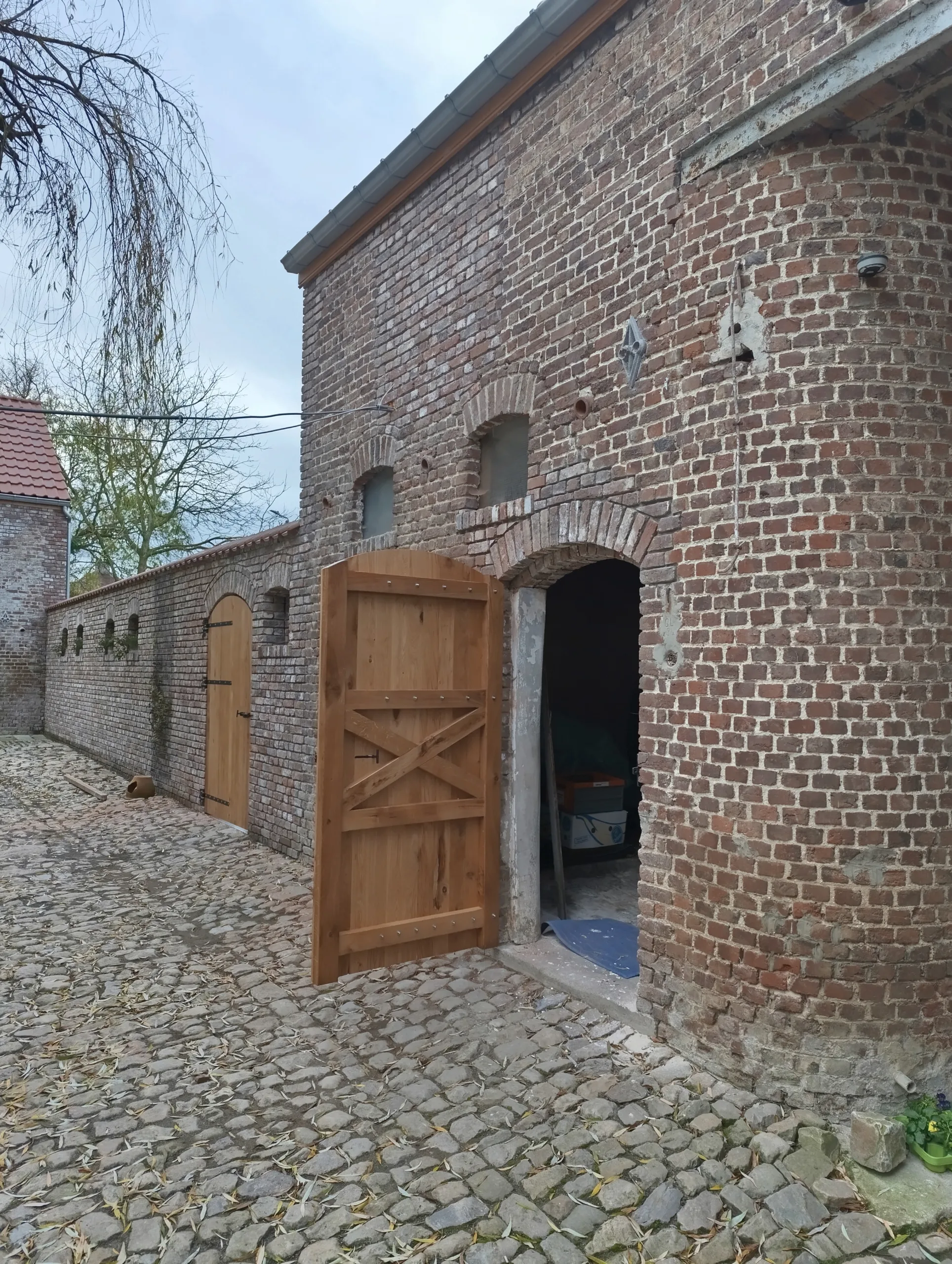 Bij de renovatie van een oude hoeve waren de oorspronkelijke staldeuren toe aan vervanging. De wens van de klant was duidelijk: twee nieuwe buitendeuren die perfect aansluiten bij het authentieke karakter van het gebouw: robuust, tijdloos en met respect voor de bestaande architectuur.