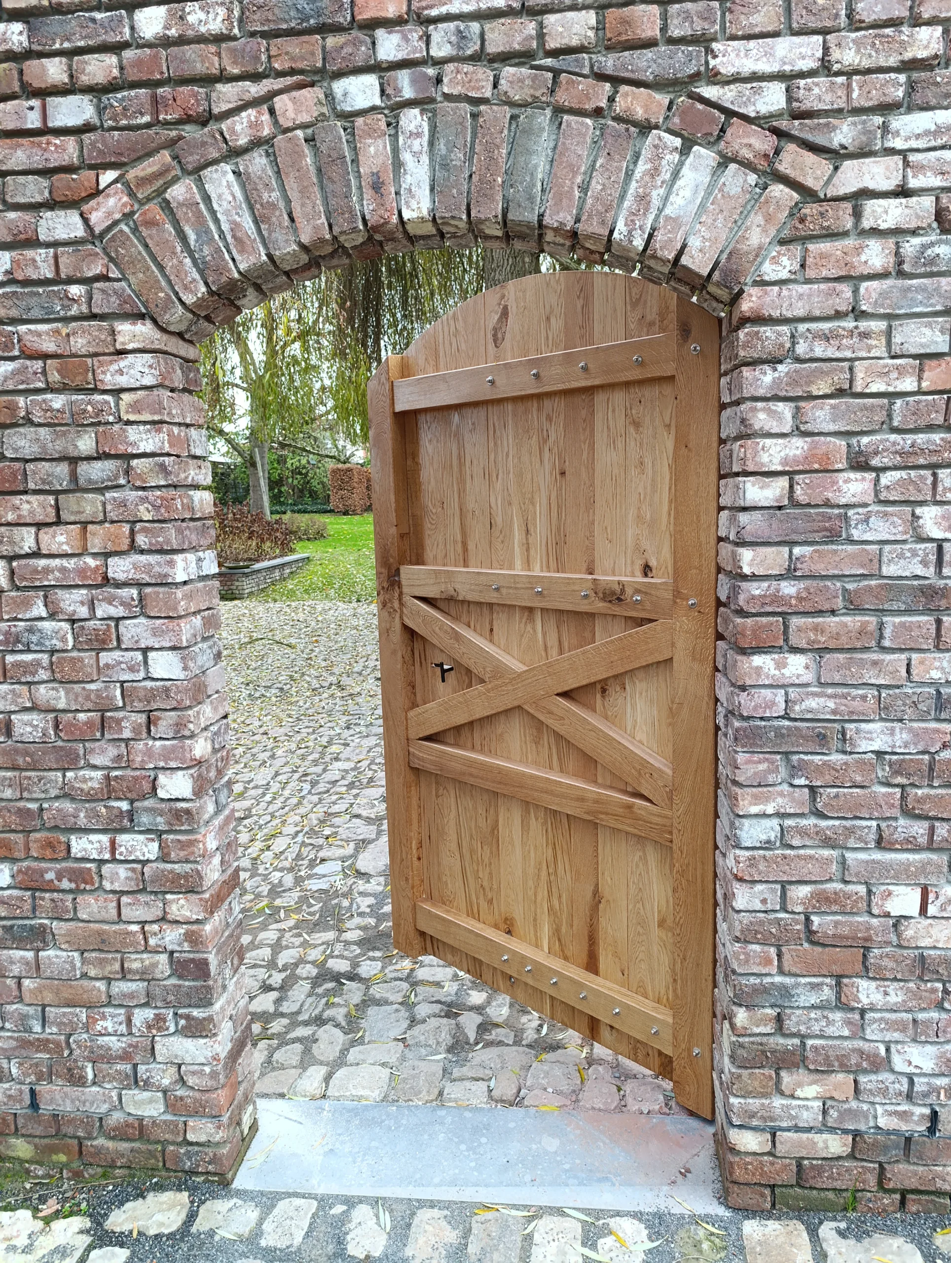 In ons atelier vervaardigden we de staldeuren uit lokaal, Europees gerecupereerd eikenhout. Door te kiezen voor herwonnen materialen geven we kwalitatief hout een tweede leven, zonder in te boeten op uitstraling of duurzaamheid.