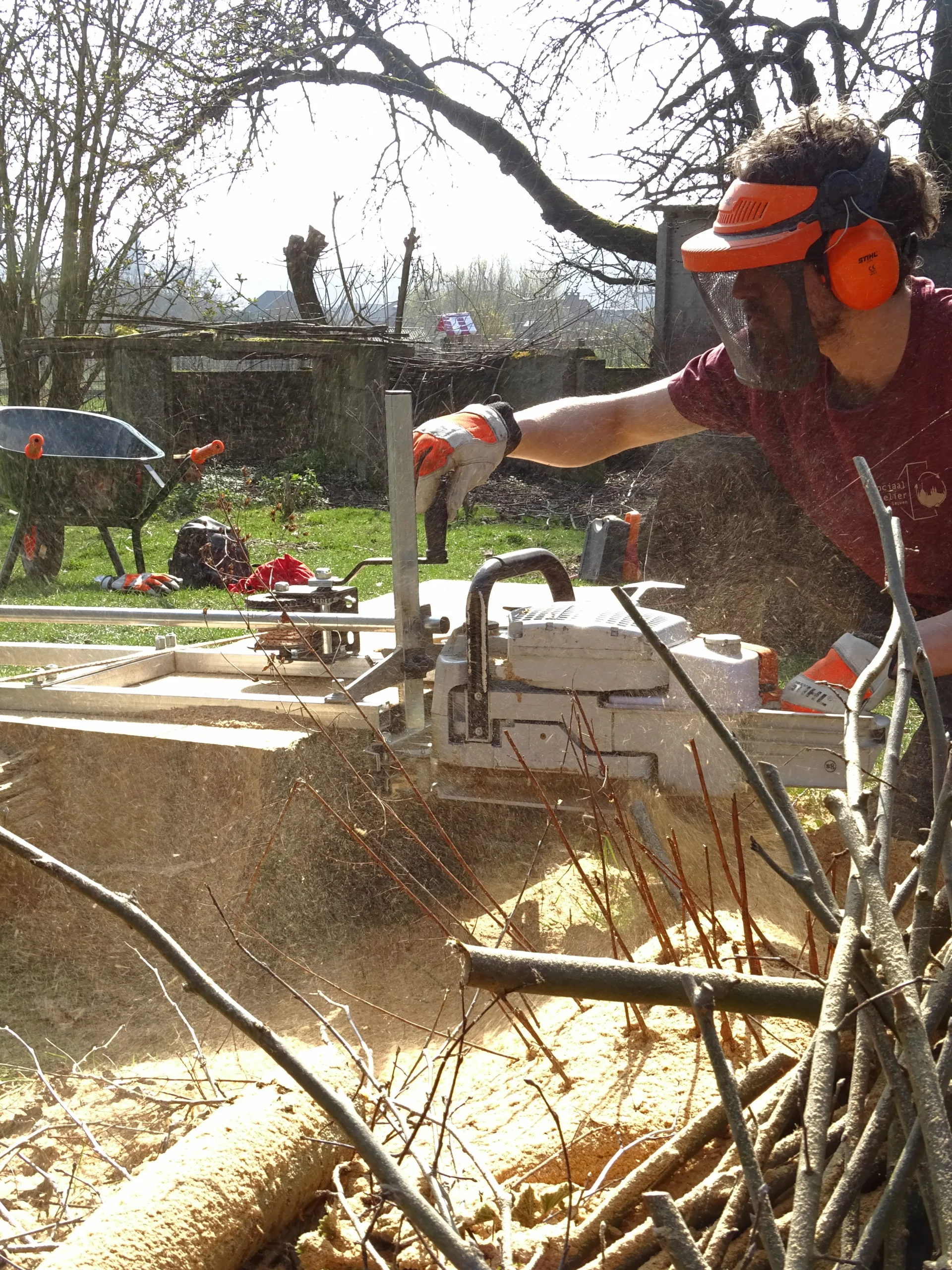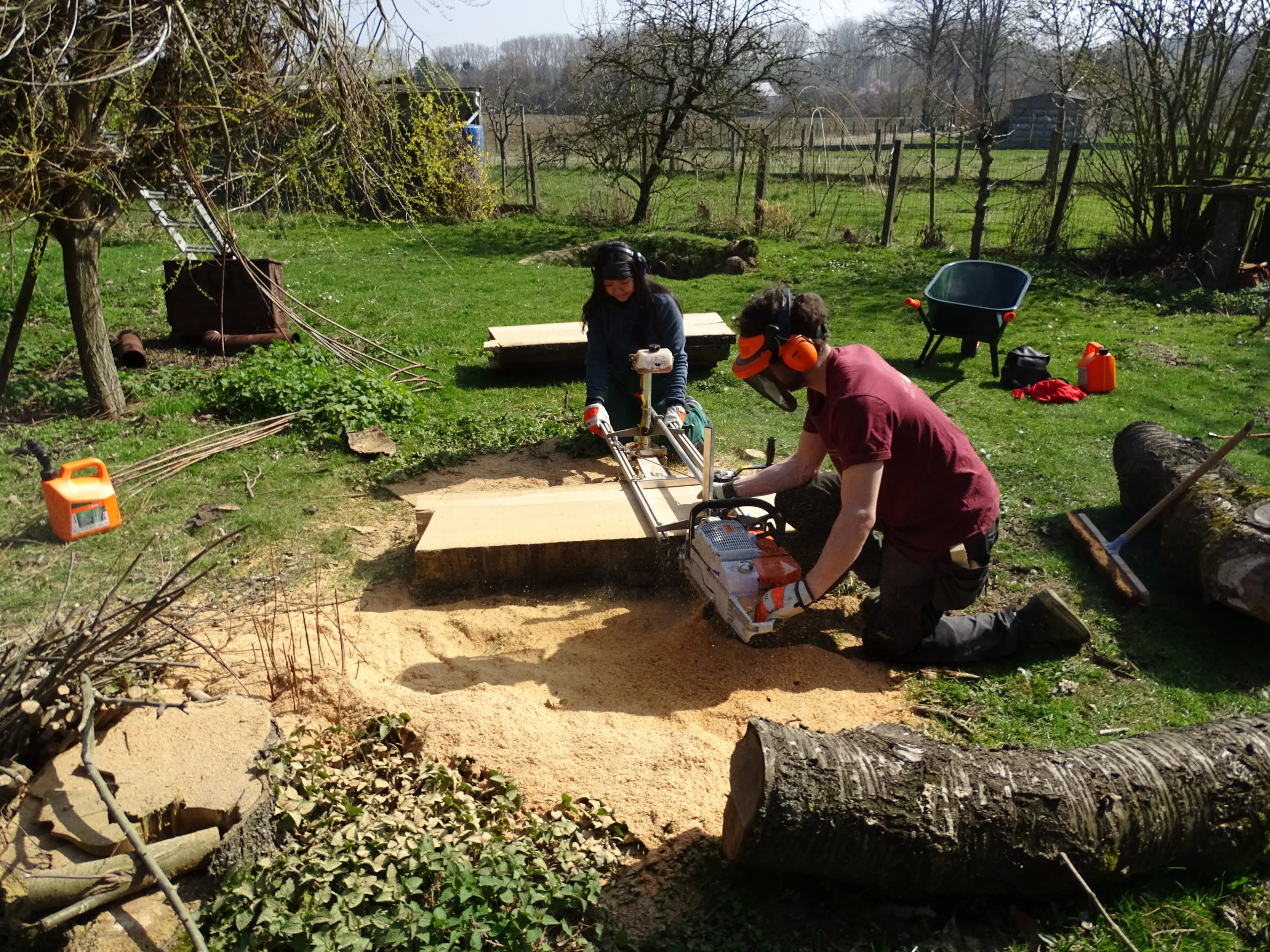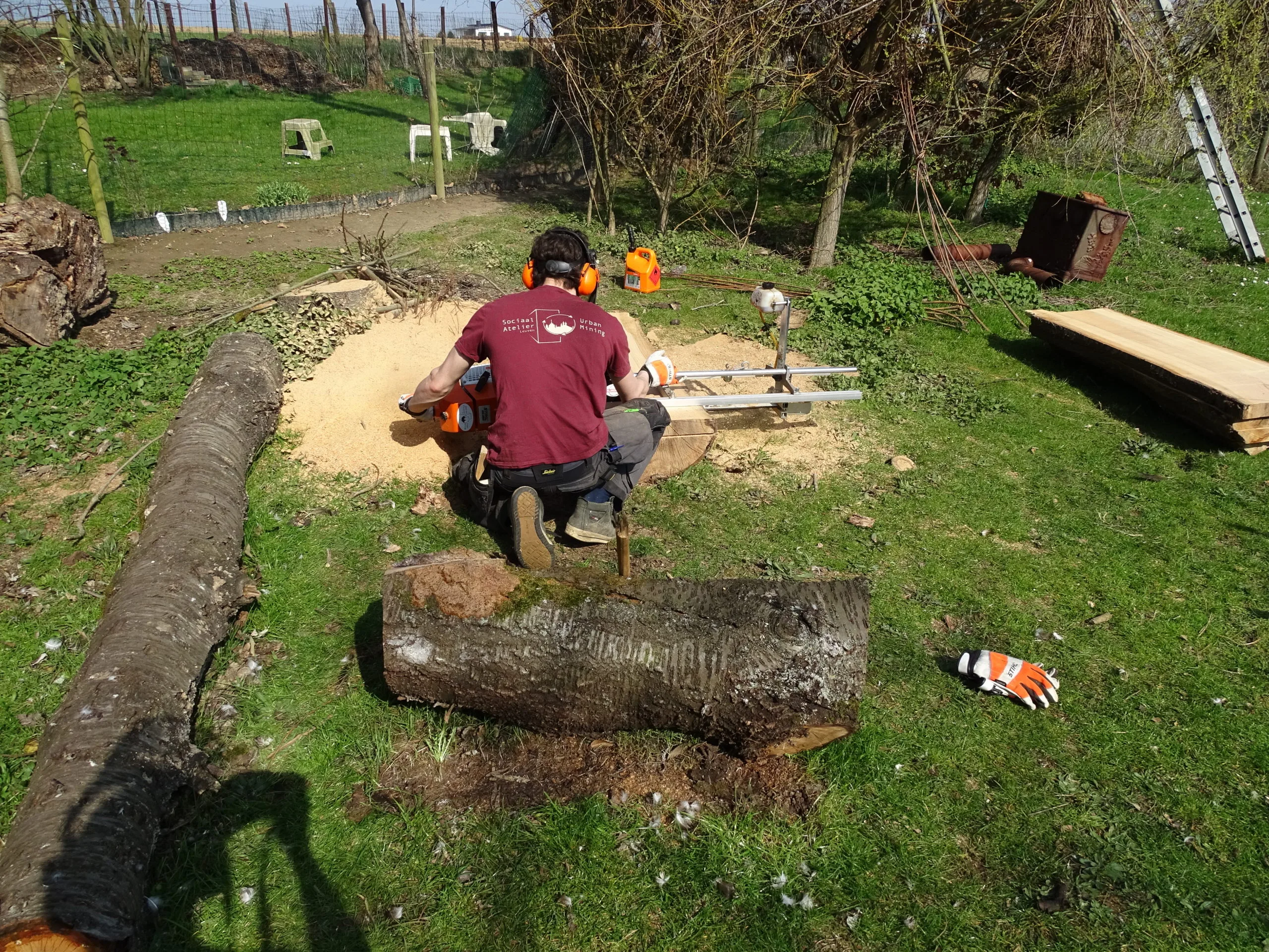 De eigenares van deze kerselaar kreeg het niet over haar hart om haar boom op te stoken in haar kachel. In ruil voor kersenhout dat wij verkregen brachten we haar een gelijkaardige hoeveelheid brandhout dat wij over hebben van onze projecten.