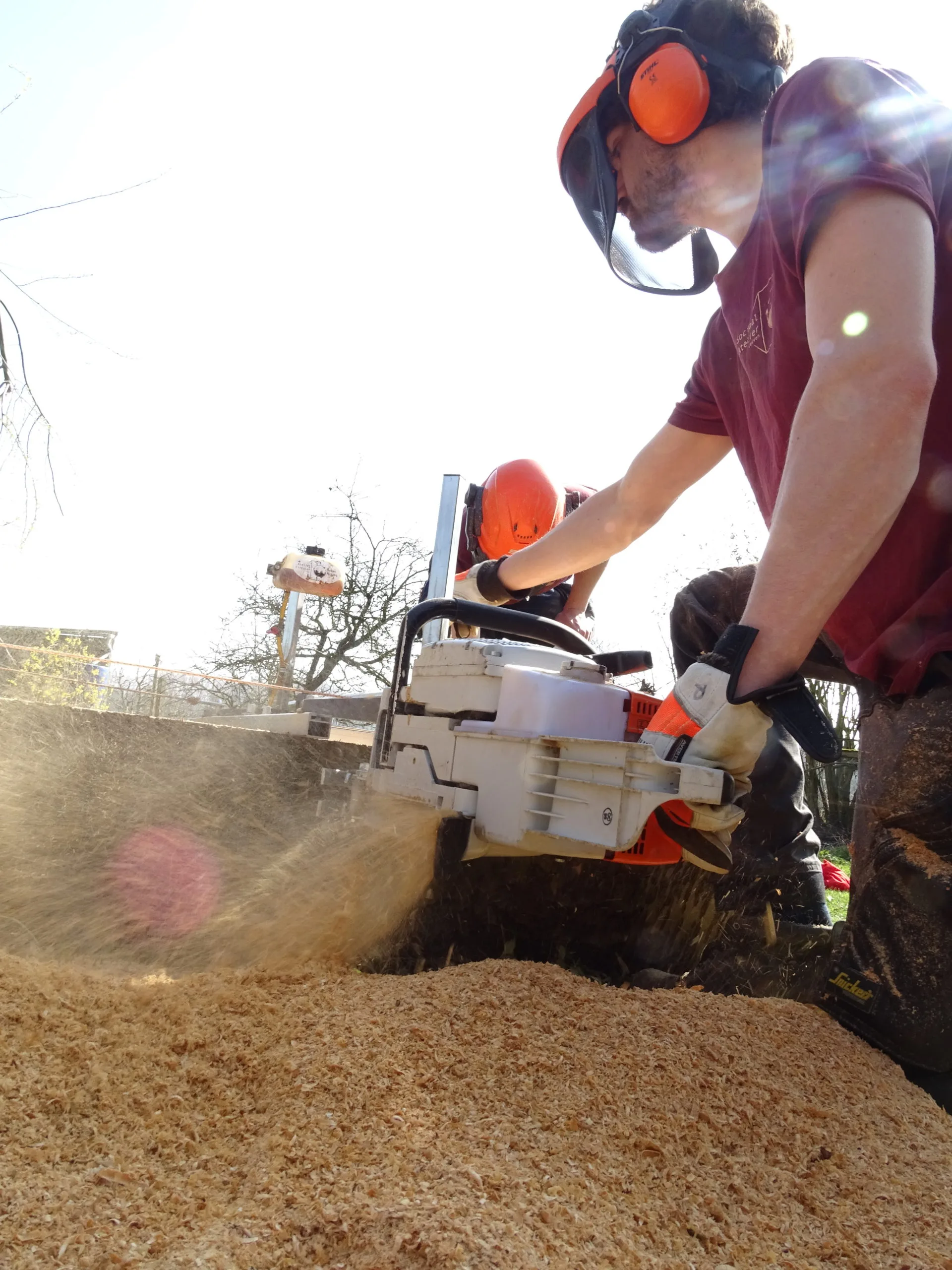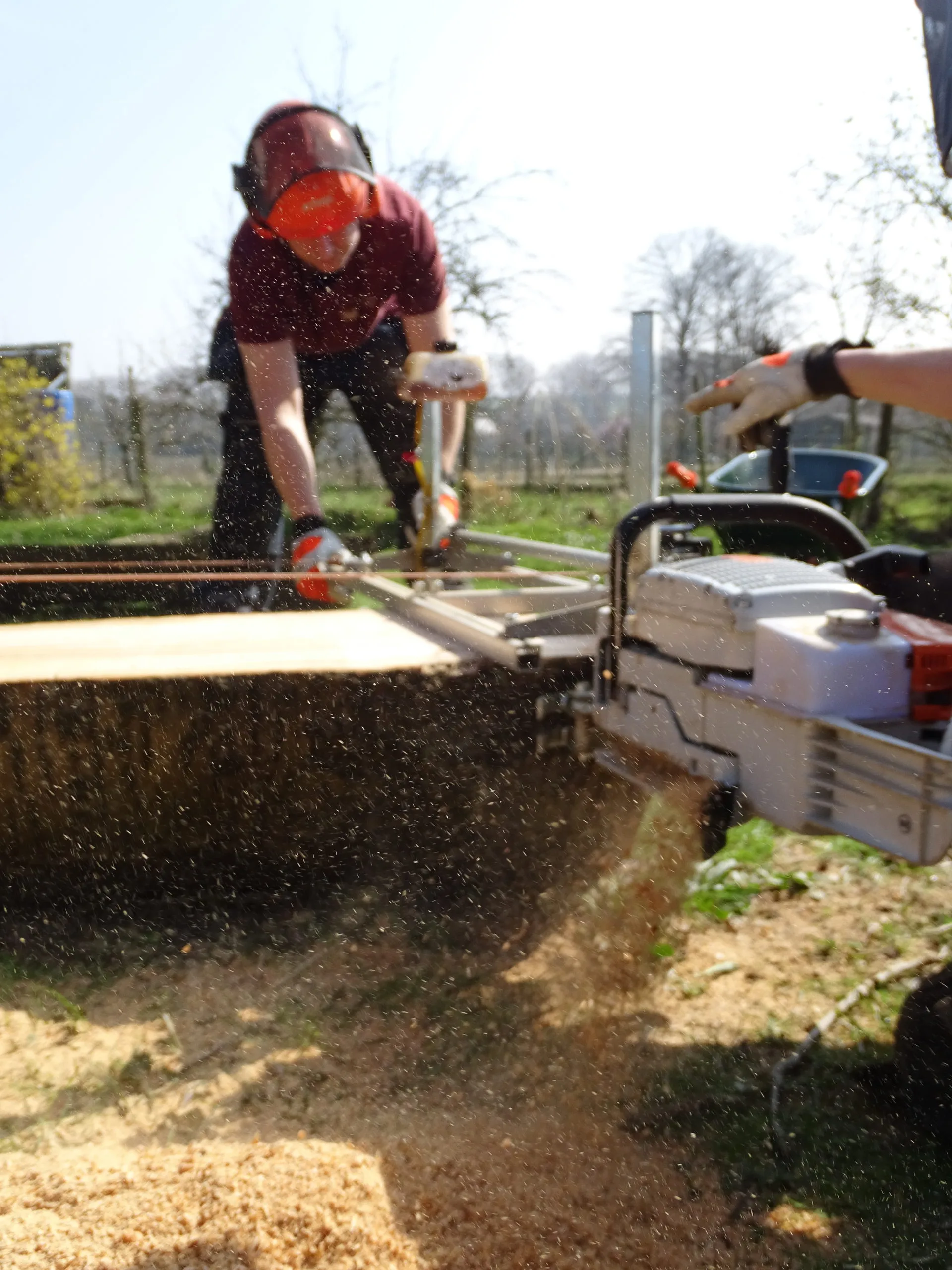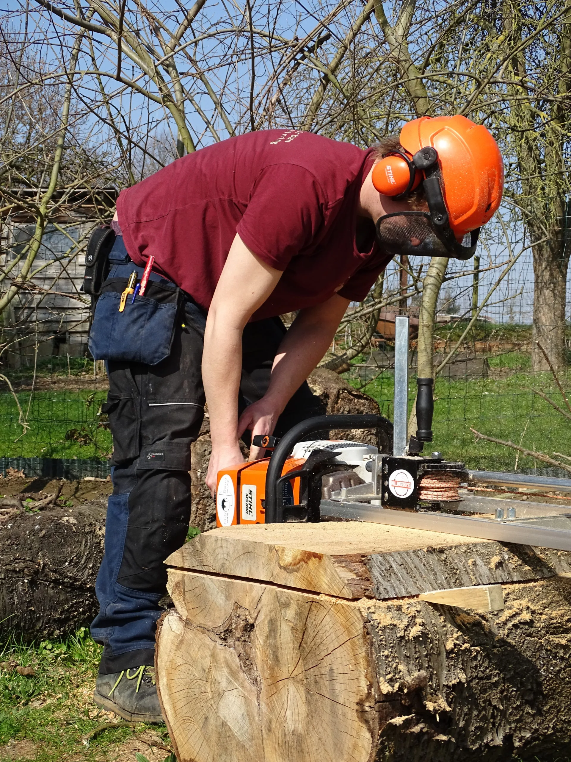 De eigenares van deze kerselaar kreeg het niet over haar hart om haar boom op te stoken in haar kachel. In ruil voor kersenhout dat wij verkregen brachten we haar een gelijkaardige hoeveelheid brandhout dat wij over hebben van onze projecten.
