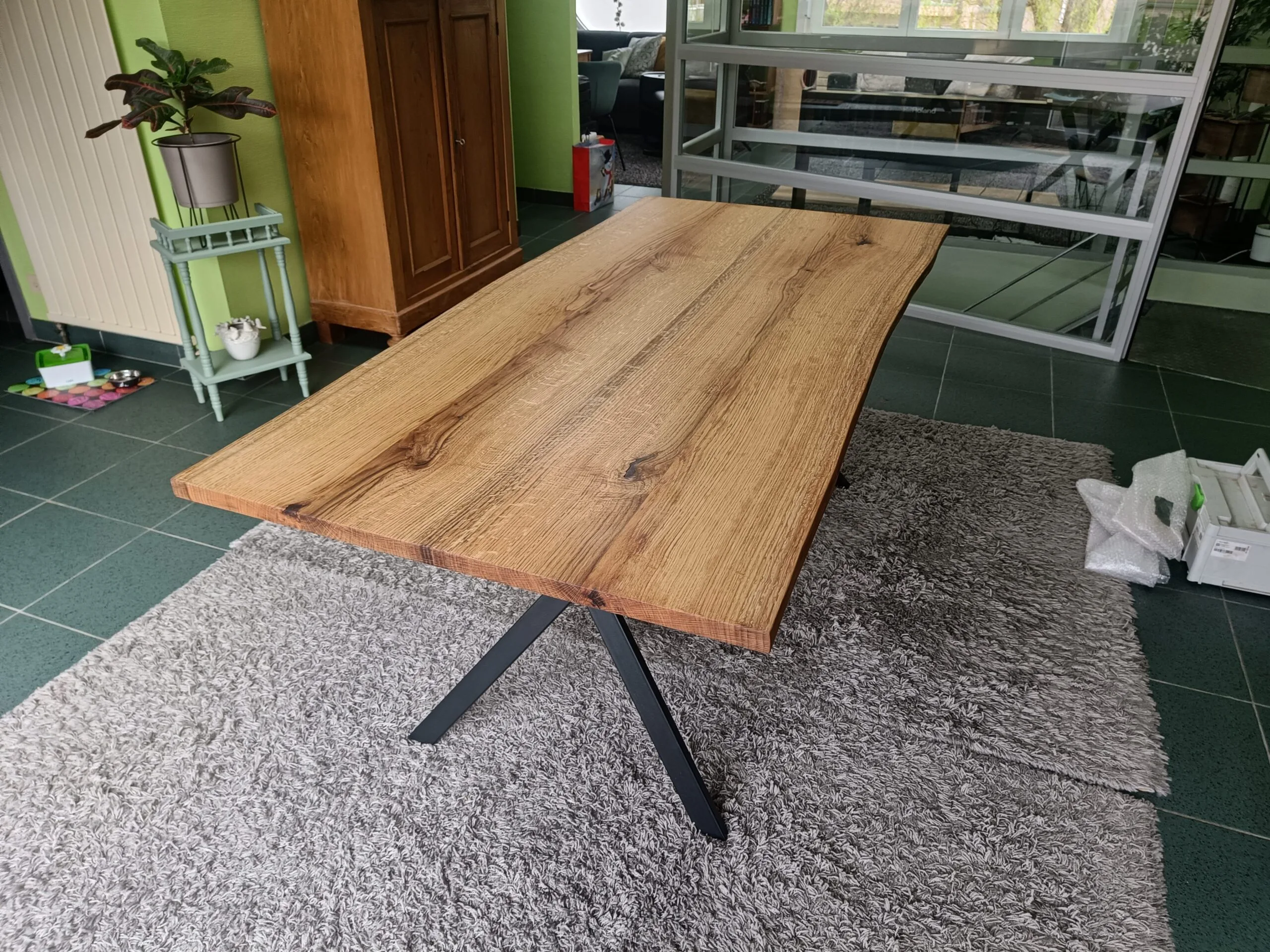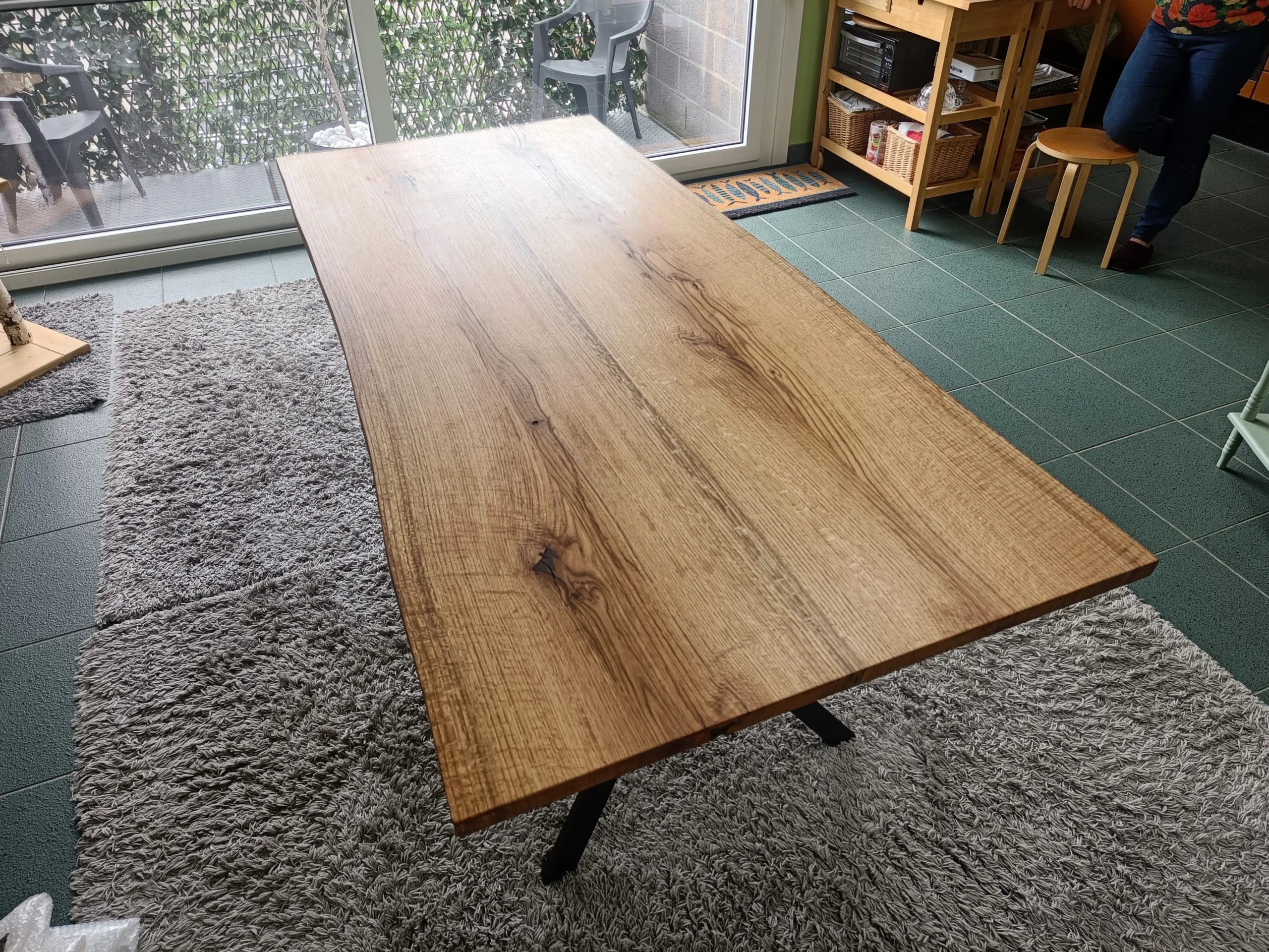De tevreden klant koos voor een blad met ’life-edge’ natuurlijke rand en afwerking met transparante olie voor een matte, zachte en natuurlijke uitstraling.